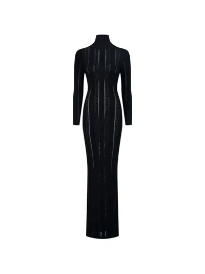 Mirages High-neck Long-sleeve Maxi Dress In Black