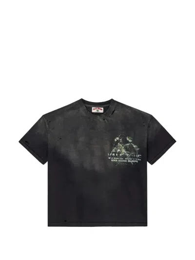 Chopper Distressed-effect Cotton T-shirt In Black