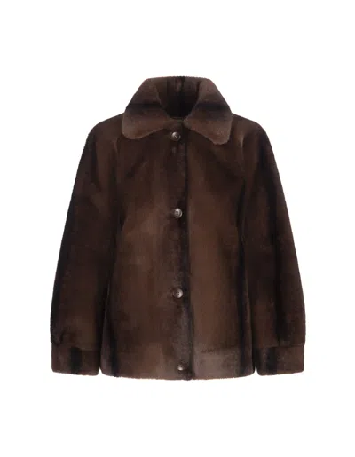 Brown Faux Fur Overcoat With Relaxed Silhouette In Black