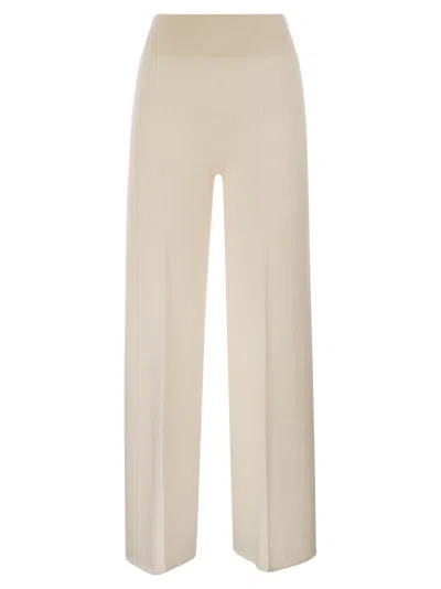 Wide-leg Cashmere Trousers With Ribbed Waistband In Brown