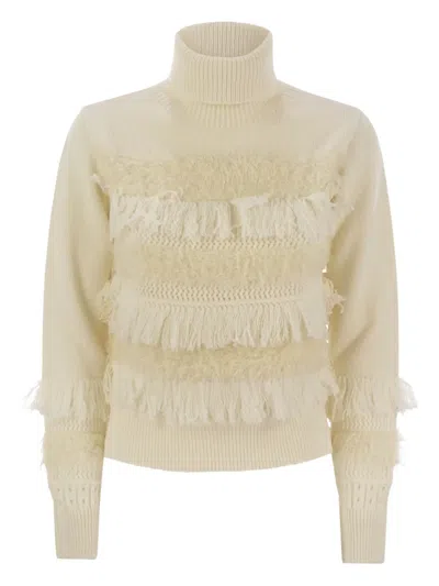 Cream Knit Sweater With Turtleneck In White