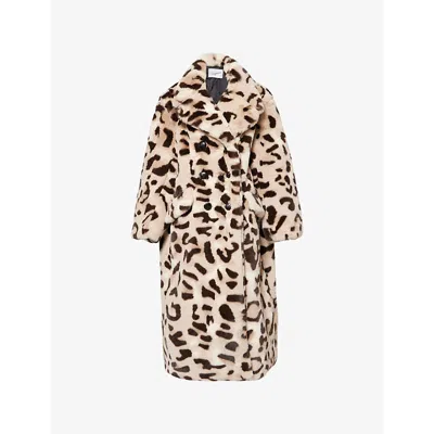 Womens Brown Leopard Leopard Double-breasted Faux-fur Coat