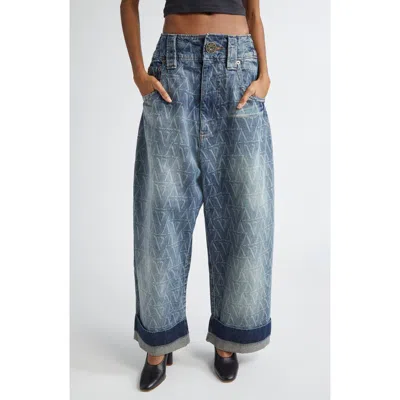 Baby Oversize Monogram High Waist Cuffed Wide Leg Jeans In Blue