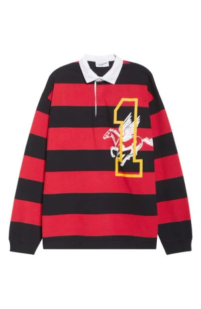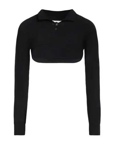 Printed Stripe Polo Knit Cropped Shirt In Black