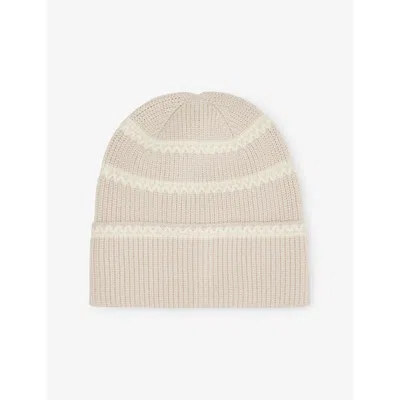 Womens Ronan Stitch Stripe Knitted Beanie Hat Silver Birch In Neutral