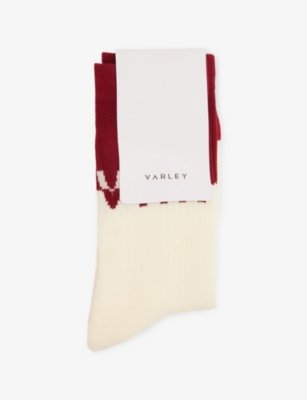 Womens Egret/red Dahlia Stellar Colour-block Cotton-blend Socks In Neutral