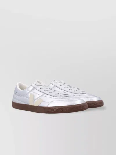 Metallic Silver Leather Sneakers With Black Accents In Multi