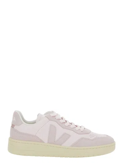 V90 Pink Sneaker With Side Logo And Perforated Toe In Leather Woman In Metallic