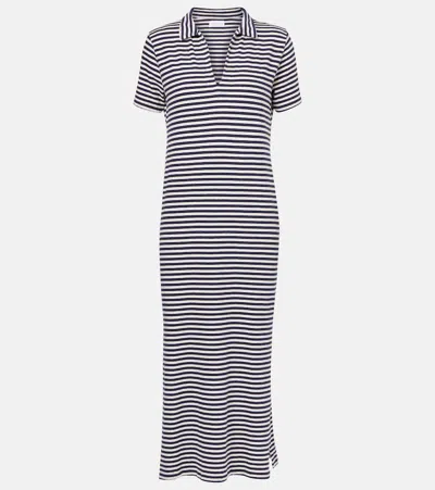 Khan Striped Cotton Jersey Midi Dress In Blue