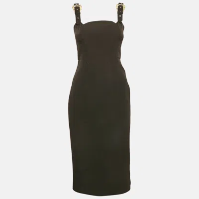 Pre-owned Black Crepe Buckle Detail Sleeveless Dress S