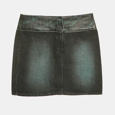 Pre-owned Black Washed Denim Leather Detail Mini Skirt M In Pink