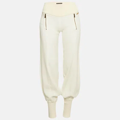 Pre-owned Chiffon And Rib Knit Trim Joggers S In White