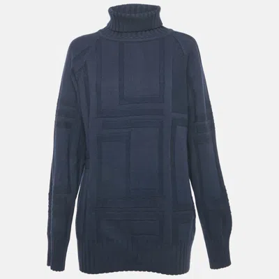Pre-owned Navy Blue Wool Turtle Neck Jumper Xl