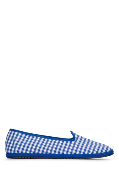 Checkered Pointed Toe Loafers With Contrast Trim In Blue