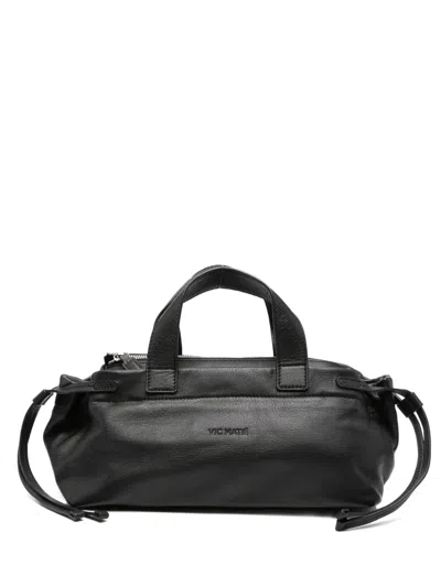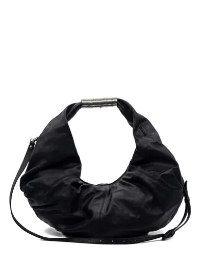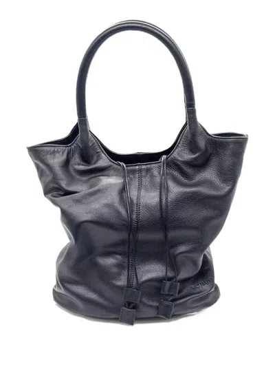 Drawstring Leather Tote Bag In Black