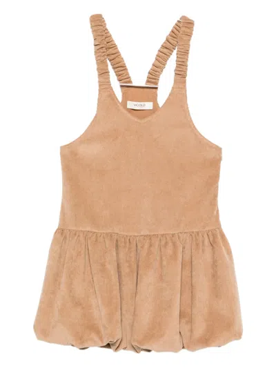 褶饰灯芯绒迷你连衣裙