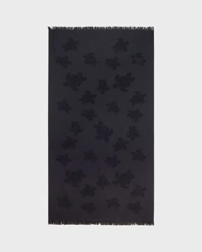 Beach Towel In Organic Cotton Turtles Jacquard In Black
