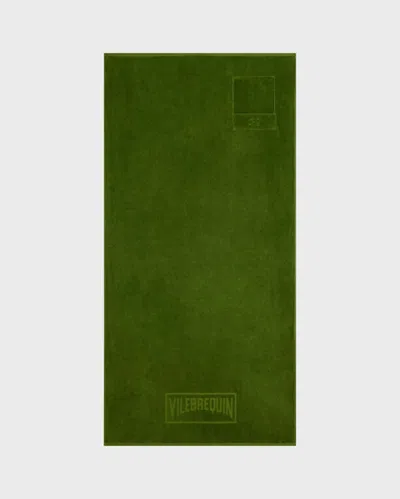 Organic Cotton Beach Towel With Flap Pocket In Green