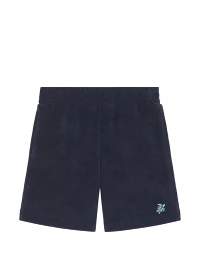 Kids' Cotton Towelling Embroidered Shorts In Blue