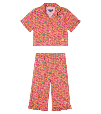 Kids' Genny Striped Ruffled Cotton Top In Blanc Marine / Rouge