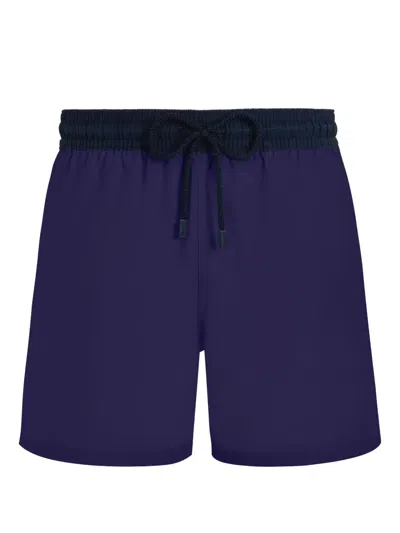 Paradis Leaf Print Swim Trunks In Purple Blue