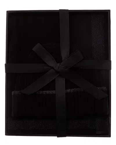 2pc Shaker Stitch Wool & Cashmere-blend Hat & Scarf Set In Black