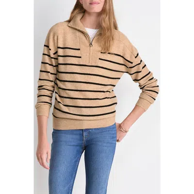 Stripe Merino Wool Blend Half Zip Sweater In Brown