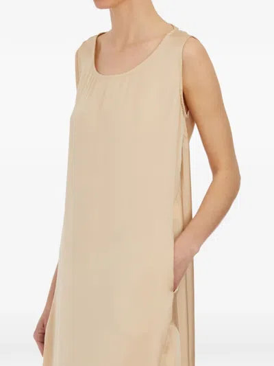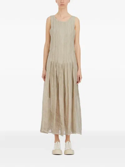 褶饰无袖中长连衣裙