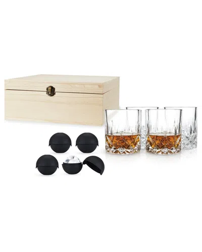 8pc Crystal Liquor Glass & Ice Sphere Wood Box Set In Transparent