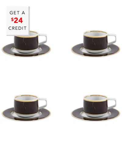 Carrara Tea Cup And Saucers (set Of 4) With $26 Credit In Black