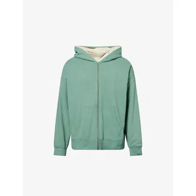 Mens Green Jumbo Zip-up Cotton And Wool Hoody
