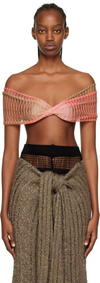 Pink & Beige Cosmic Butterfly Camisole In Pink And Beige