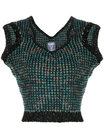 Sleeveless Knit With Frayed Hem And Textured Sparkle In Black