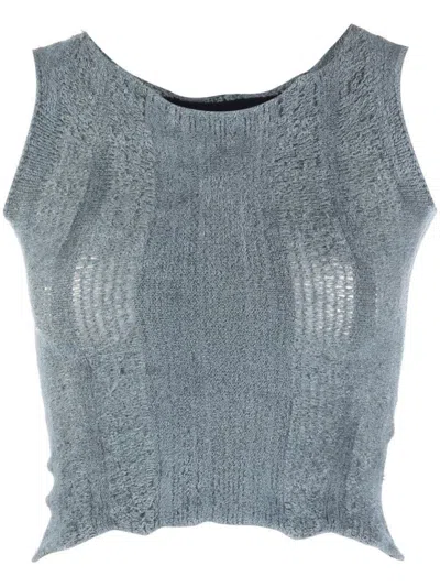 Open-knit Sleeveless Top In Misty Blue