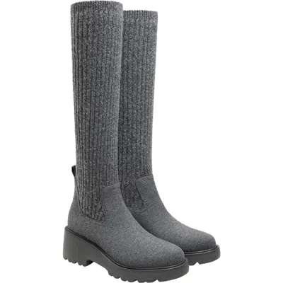 Round-toe Knee-high Platform Chunky Wool Wedge Boots In Gray