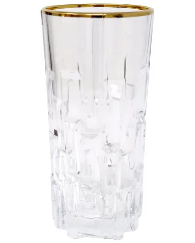 Set Of 6 Highball Glasses With Block Design & Rim In Transparent