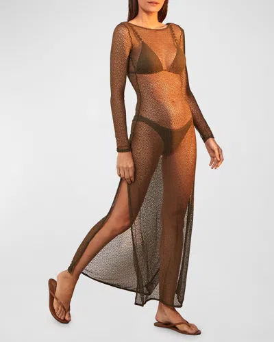 Solid Lexia Sheer Backless Maxi Dress Coverup In Evergreen