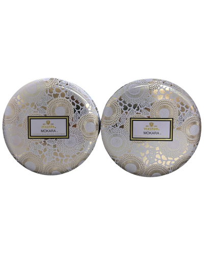 Pack Of 2 12oz Mokara 3-wick Tin Candles In Gray