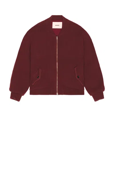 Hand Knitted Bomber Jacket In Burgundy