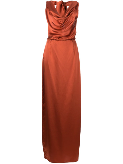 裹身式超长真丝连衣裙