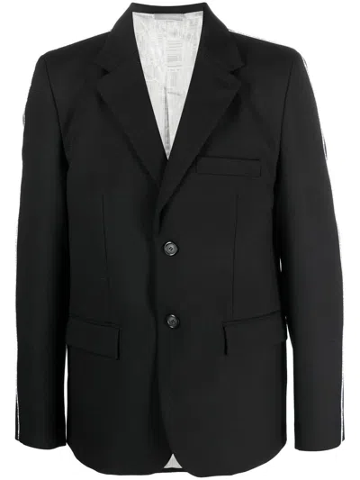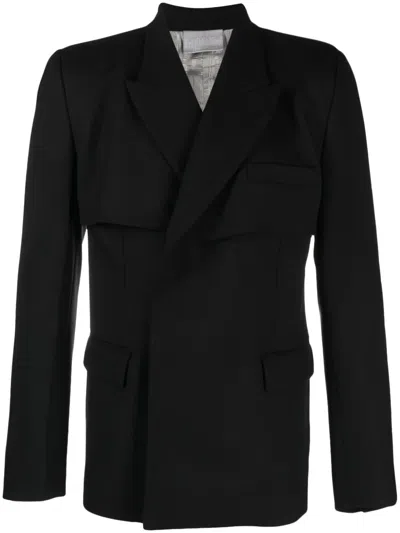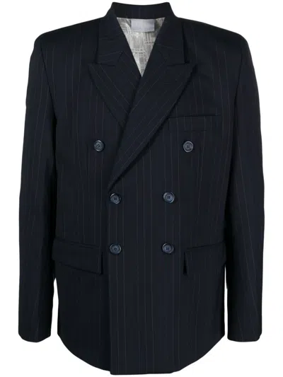 Double-breasted Pinstriped Blazer With Flap Pockets In Blue