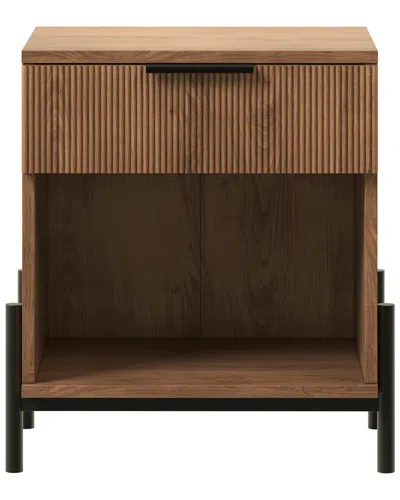 24in Reeded Wood 1-drawer Nightstand In Brown