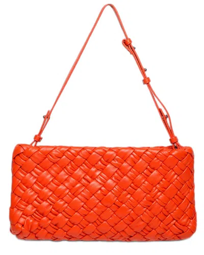 Whitley Woven Leather Clutch In Peach
