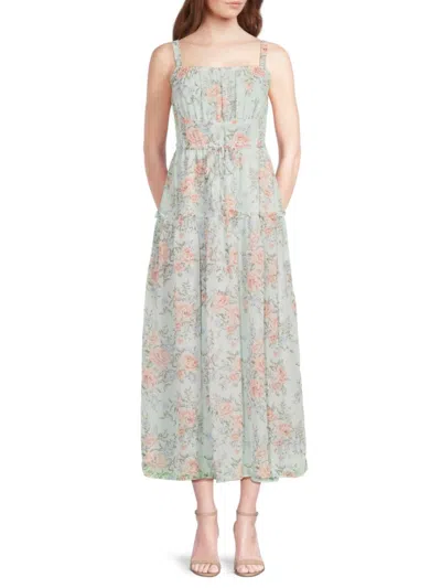 Tiered Maxi Dress In Light Blue Sky Rose In Multi