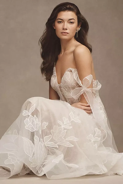 Wtoo By Tia Embroidered Tulle Sweetheart A-line Wedding Gown In White