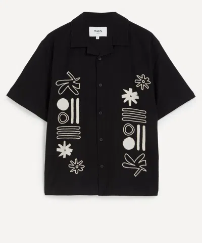 Mens Didcot Black And Ecru Abstract Applique Short-sleeve Shirt