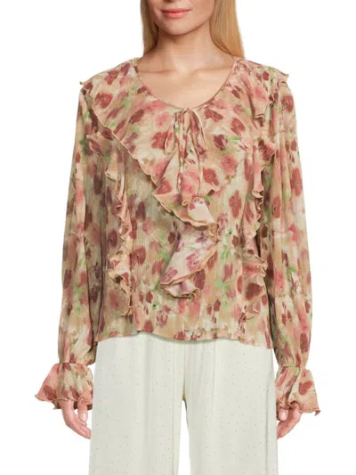 Women's Floral Ruffle Blouse In Pink