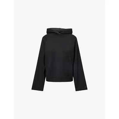 Omens Black Softsmart Flared-sleeve Woven Hoody In Blue