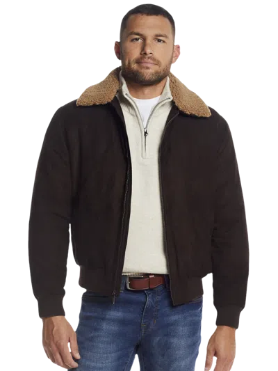 Modern Fit Microfiber Fleece-lined Bomber Jacket In Blue