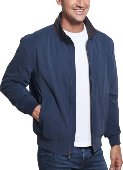 Modern Fit Microfiber Fleece-lined Bomber Jacket In Blue